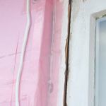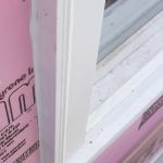 Around the flashed window openings, we applied continuous beads of silicone caulk on top of the flashing tape before installing the foam. The foam was bedded in the caulk and held back far enough to leave room for the casings. To complete the semipermeable air barrier, we sealed the seams and edges of the foam with Owens-Corning Bild-R-Tape, designed specifically for XPS insulation. Along with the flashings and caulk, this belt-and-suspenders approach provides an extra layer of protection against air and water infiltration. And with no interior vapor retarder and a perm rating of 1.1 for the rigid foam, these walls can dry both to the interior and the exterior.