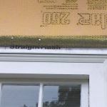 After installing the trim, we sealed the sides and tops of the casings to the foam with more Bond&Fill Flex. Then we added a 1 5/8-inch metal drip cap over the top of the casing, giving it a slight slope to help drain water away, and flashed the drip cap to the foam with StraightFlash butyl tape.