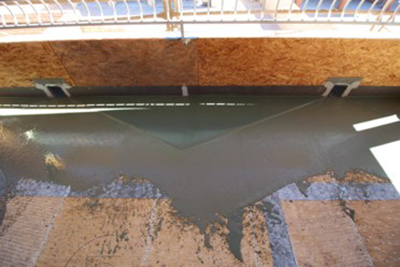 Be sure your flashing adheres to accepted industry standards, which state that flashing needs to be 4- x 6-inch at all wall-to-deck junctions, have a 2- x 4-inch drip edge on all outside edges, and flashing needs to overlap 4 to 6 inches. We recommend using bonderized metal for waterproofing coatings. Stainless steel, galvanized steel and copper are all acceptable materials for flashing, and will need to be prepped before applying the coating.