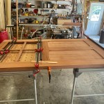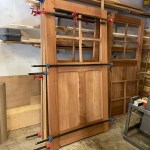 With all the door components mortised, routed, and stacked aside in four bundles, I assembled the doors one at a time.
