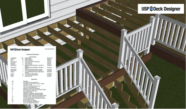 DIY Technologies (a subsidiary of MiTek) now offers a free, cloud-based interactive software package (for PCs running Windows OS) that allows contractors to design every aspect of their next deck project in collaboration with their customer. Called USP Deck Designer the easy-to-use software provides its users with a wide range of capabilities, including: