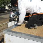 The deck joists should be sized and spaced to carry the expected load and installed in such a way that the surface slopes at least 1/4 inch per foot toward where it is supposed to drain. I prefer to see 3/4-inch plywood on my jobs, although 5/8-inch plywood is also acceptable. Either way, the sheathing must be blocked at the edges and have a minimum 1/8-inch gap between sheets. If the sheets are not properly gapped, we ask the contractor to saw a kerf between the pieces. Oriented strand board (OSB) is not an acceptable substrate for a waterproof deck — it will void the manufacturer’s warranty and negate the fire rating of the assembly.