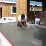 That three-layer sandwich is then covered with a suitable finish material. If the framing below is sufficiently stiff, Desert Crete can be used as waterproofing under tile or stamped concrete. More typically, though, we apply a colored textured coating. Although the project described here involved new construction, we frequently install the product on existing decks provided that the framing and sheathing are in good condition.