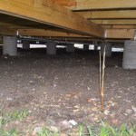 Pier/Beam Foundation With Steel Skirting. I like the flexibility afforded by pier & beam houses. If we need to remodel this house someday or if we need to re-level this house, the pier/beam foundation is much better than a slab-on-grade. Interestingly, the owners wanted the ability to move this house in the future, and with this foundation, we could slide large steel beams under the house and literally pick it up. For the perimeter of the foundation, the architect decided to use steel plate instead of a more traditional stucco or stone skirting. It’s showing some heavy rust from the sprinklers but I’m guessing it’ll be here for a solid few decades. A very modern choice indeed.