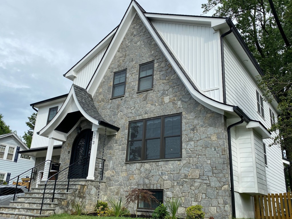 Take a tiny three-bedroom cottage he bought in partnership with another local remodeler, Ryan Rodger, owner, and CEO of Orion of Virginia, as a teardown. Nasr’s team built a new 3,830 SF, 5-bedroom/4.5-bathroom neighborhood showcase. The killer exterior feature is a pair of eye-catching, gently-curving trim applications.