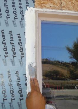 Step 7: Next, add the enhancement (see “Buttered Sealant” description above.) The “buttered sealant” technique is an enhancement to Methods B and B1 that has been used on the West Coast for more than 10 years by large production builders with spectacular results. Since the time it was first implemented, warranty claims from leaking windows have fallen dramatically.