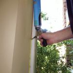 Before new windows can go in, the old ones have to come out. This operation is generally straightforward and takes 10 to 15 minutes per window. We start by removing the sash, then use an oscillating tool with a straight blade to cut the sealant between the trim and the masonry.