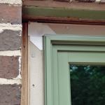The bottom of the window buck is usually in direct contact with masonry, so we install a piece of peel-and-stick flashing between the two elements to prevent any moisture in the masonry from wicking into the buck, which is untreated lumber. A word of caution here: I avoid using treated lumber for the buck unless it’s required by local ordinance. Treated lumber often has a moisture content in the 20% range and, as it dries, this moisture can migrate to drier material—usually the new window or wood trim. This moisture migration can cause the drier wood to swell, potentially causing problems with the appearance and operation of the window. If treated lumber is required, we use material that’s been kiln dried after treatment. Sourcing KDAT is often problematic, however; few suppliers around here carry it and there’s often a lead time. But if we do use it, we take care to isolate the window from the treated lumber with flashing tape.