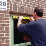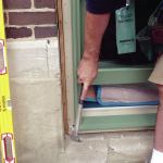 We start the replacement process by measuring each window and window opening. We always try to maintain historically accurate details, such as elaborate trim, so accurate measurements are important. With this particular brick building, we measured each masonry opening at several different spots because openings are often not true, especially in vintage structures. I also always check whether the opening is plumb and level. If it’s not, I may need to add blocking so that the window sits true in the opening, or I can add trim to mask the out-of-level or out-of-plumb condition. Either way, I want to be aware of any special requirements before we ordering the window and attempting to install it.
