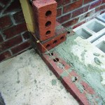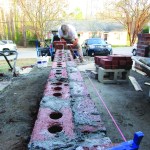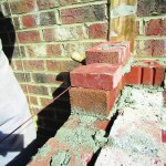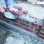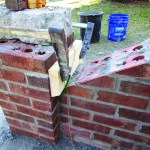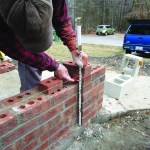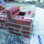 After laying up six courses on the column, the author made a mark 15 inches above the concrete base.