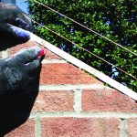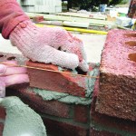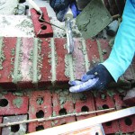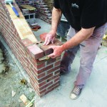 Every few bricks, he checked the spacing with a brick-spacing ru…