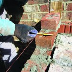 Using a brick-spacing ruler, he laid out even spacing of the row…