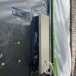 The Parklex siding was the dominant cladding on the house. It mounted on a metal track system that consisted of aluminum “clips” attached to the wall every 20 inches or so, with ¼-inch stainless lag screws at stud locations. These clips hold either L- (at corners) or T-shaped (in the field) aluminum extrusions that create a drainage space (or rainscreen) behind the horizontal siding boards and provide support for it. The boards attach to these extrusions with aluminum clips that have grooves to accept the tongue on the top and bottom of each board. Once in place, the boards are self-spacing, leaving a ⅛-inch gap between boards. All these elements together projected off the house 3 inches.