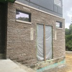Second, and of great importance for keeping the project on schedule and on budget, we tried whenever possible to arrange the work schedule so we wouldn’t have to spend a lot of extra time protecting installed materials. Since we knew up front that stonework would be extremely messy (lots of mortar droppings are always expected), we opted whenever possible to install that first. There were, of course, some things, such as the windows, that would still need to be protected.