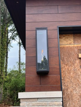 Another area that’s critically important to dial in is the cladding finish details around exterior lights, receptacle boxes, hose bibs, bath fans, and the like. Knowing the specific products used on the exterior and planning for these before installing the finished surfaces can save a lot of headaches. I’ve seen many projects over the years where the client didn’t know what light fixture they wanted to install, and we couldn’t plan an intentional detail for how it would be mounted. Also, making sure the trades have completed the rough-in portion of all the exterior penetrations seems like an obvious one, but it can slip through the cracks when scheduling delays occur. On this project, we did have all those details ironed out with the clients ahead of time. Included were some cool gas lanterns, which were new for us, but we had plenty of time to devise built-up mounting blocks for these.