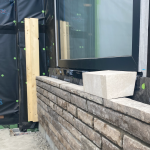 Because the building stone would wrap the circumference of the building, the stone masons would be the first trade on site. Once underway, they had a few months to install some larger sections before we released the siding crew (the same carpentry team that framed the house and handled all our block-out work; they were involved in approving the original mock-ups, so they were already in tune with the project).