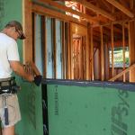 One more thing: Be sure to use Huber’s recommended sealant for setting the window nailing fins. Initially, we tested Lexel, a solvent-based co-polymer rubber sealant, on some scrap Zip panel coated with Liquid Flash and it didn’t cure. After talking with Huber, we ended up using 100% silicone sealant, though butyl and polyurethane are also acceptable.