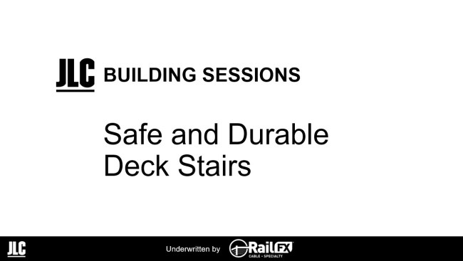 Leading off in this first session, we take up the combined challenges of designing and building safe stairs for outdoor decks that will last over time and be still be cost effective.