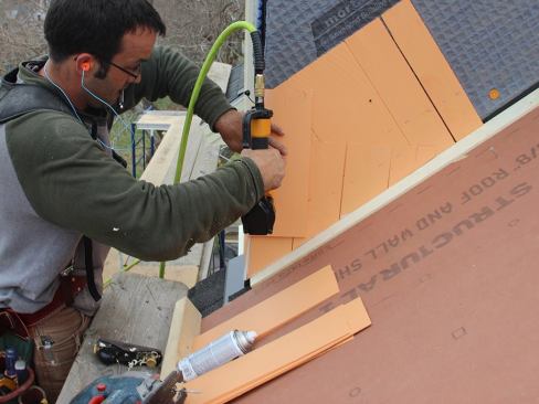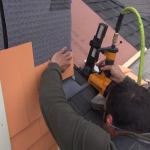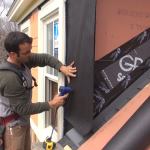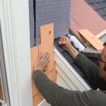 Pollard presses the ZIP tape onto the flashing with a hard rubbe… Pollard presses the ZIP tape onto the flashing with a hard rubber J-roller to improve adhesion.