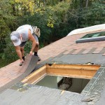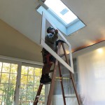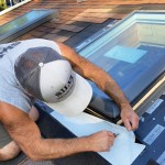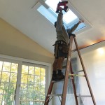 Timing and prepping materials in advance are important when you replace a skylight; you don't want a big hole in the roof with rain in the forecast. It took about three hours to remove the old skylight and install the new one so that it was weatherproof. Lifting a skylight up onto a roof is a two-person job. In this case, the homeowner helped.