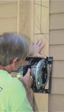 With vinyl siding, the layout is the same, but the cut can be made with snips and a utility knife — though I’ll use a circ saw every chance I get.