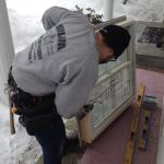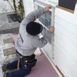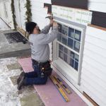 After positioning the window in the opening, Manny checks the to…