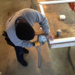 Manny cuts back to his scribe line using an oscillating cutter to remove the sliver of material.