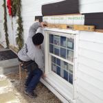 After confirming that the window is level and centered, Manny nails off the two bottom corners.