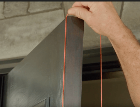 Get a length of string—chalk string will do—that will allow some coverage of the top and bottom of the door.