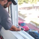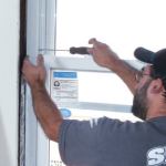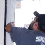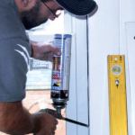 I tilt the unit into the opening, then make sure I have an equal space on both sides, usually about 1/4 inch. Because I’ve already set the shim screws, I know that the window is level along the bottom. Next I plumb one side, then the other, starting with the bottom installation screw, checking and rechecking for plumb, and making adjustments as needed.