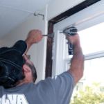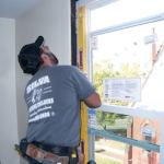 When I think both sides are plumb, I double-check by opening both sash about 1/2 inch and eyeballing the gap to make sure the edge of each sash is perfectly parallel to the frame. Once I’m confident the frame is plumb, I screw in the adjusting screws located halfway up the sides of the frame, then install the final installation screws. After opening and closing the window a few times and checking that the sash tilt out properly, I push up the top expander until it’s about 1/4 inch from the existing jamb (to leave a gap for foam), then snap in the guide sleeve that covers the top screws.
