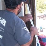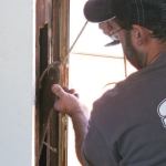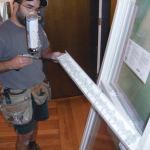 After removing the old units, I take out the weights and pulleys and insulate the cavity. I cut some fiberglass insulation to size, then use a strip of flexible metal to push it up into the pocket from the bottom access opening until I can see it at the top. I pull the batt material back down snugly against the bottom of the pocket and fill the top of the pocket with small pieces. I replace the pocket covers, then cover the holes with foil-faced tape.