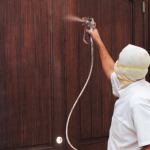 Sanding sealer partially fills the grain, helps create a smoother final finish, and improves moisture resistance. There are a number of sealers on the market from various manufacturers, but I prefer to use Sher-Wood Fast Dry vinyl sealer because I know that it’s compatible with BAC stains and the top coats I use. In most cases, I spray on two coats using a Graco 595 airless spray rig with a #411 tip, which has a 0.011-inch opening and an 8-inch spray pattern at 12 inches.