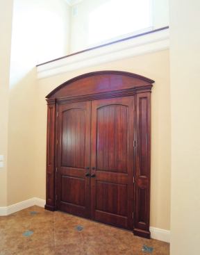 I’m an independent painting contractor, and do most of the finish work for Gary Striegler, a builder in Fayetteville, Ark. He built the entryway featured in this article – a pair of mahogany doors framed by built-up door casings and an arched pediment – using birch plywood panels, a combination of pine and poplar moldings, and poplar trim stock (see sidebar).