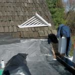 People don’t like the look of the exposed membrane, so there is always a temptation to shingle over the lower-roof membrane. In many instances, the lower roof is deep enough that the exposed roofing isn’t visible from the ground. But in cases where it is visible, and either the homeowner or an architect doesn’t want to see a big exposure, the self-sealing characteristics of EPDM or TPO (the low-slope roof membranes we typically use) will provide some measure of protection. If more protection is needed, to seal around fasteners, we may add a layer of peel-and-stick underlayment. But this leads us to the second issue: the need to isolate incompatible materials.