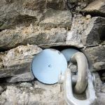 After snugging up the turnbuckles, we waited several days before backfilling to make sure that there were no signs of shifting or settling. When we were satisfied on that score, we hung a dimpled drainage mat against the inner face of the restored wall – slitting it in places to pass around the tieback anchors – and backfilled with clean stone. (We’d already run drainage tile at the base of the wall to keep our feet dry while we worked.) We then cut off the protruding rebar and bedded the original coping stones in fresh mortar, sealing the joints where the stones butted together with a polyurethane sealant.