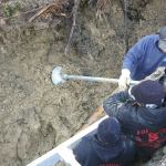 This part of the job took only a few hours, with less and less effort needed to move the wall as it approached the vertical. Much credit goes to our excavation sub, who showed a master’s touch on the controls – it was no job for a journeyman.