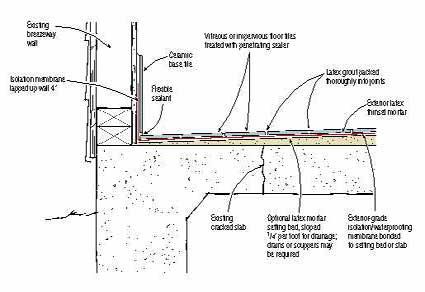 Q. I’ve been asked to tile the floor of an enclosed breezeway that gets tracked with a lot of dirt, leaves, and snow. Besides being subject to the temperature extremes found in Ohio, the existing concrete slab has a crack running across its width. Is porcelain tile the best option in this situation, and how should it be installed?