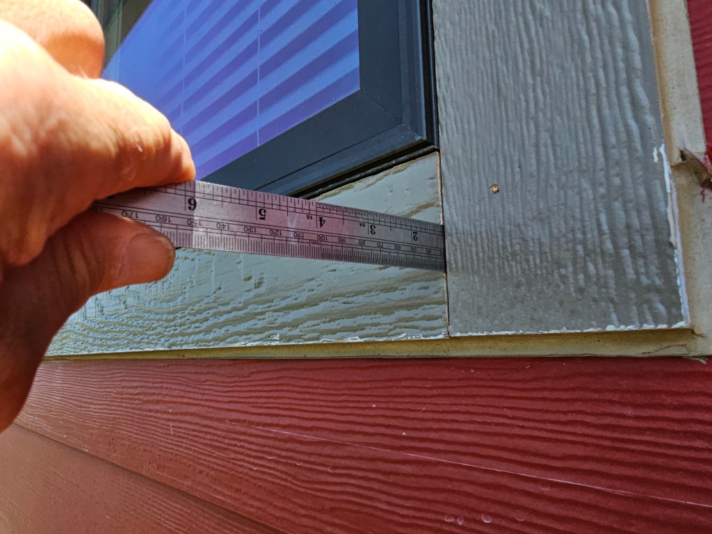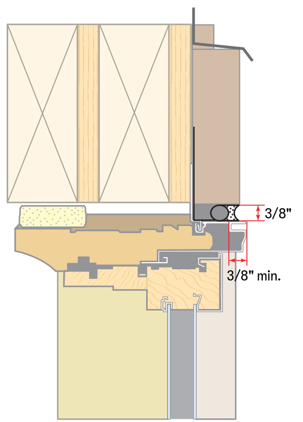 Gap at the window frame. Pella is specific about leaving a 3/8-inch gap between the window trim and exterior cladding, and a similar gap between the trim and the window (see illustration, below). Most window companies require similar gaps, though the exact size might vary by manufacturer. This gap is needed to create a proper seal using backer rod and sealant to prevent water from leaking under the trim where it might find its way under the nail fin and into the wall.