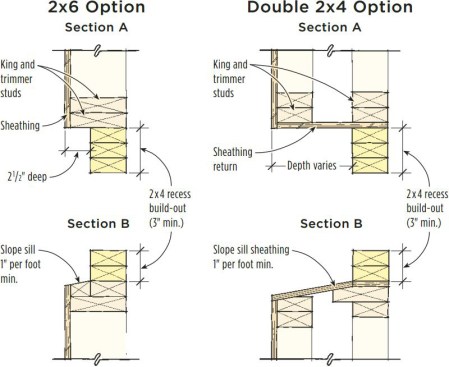 The recess needs to be solid framing or sheathing. The sill of the recess needs to slope to the outside by at least 8 degrees.