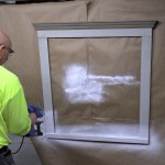 The author prefers to prefinish both siding and trim before installation. Here he uses a Graco 390PC airless sprayer.