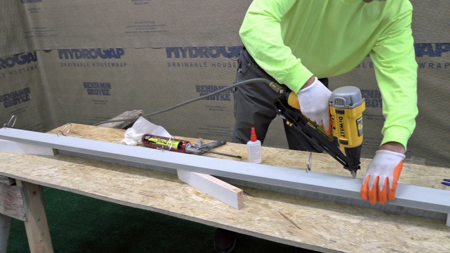 When we do use corner boards, we preassemble them using a miter at the outside edge. I have also joined corner boards with lock miters, cut with carbide bits on a 2-hp router on a table, as shown above. But to be honest, a lock miter is overkill; a mitered corner looks just as good, and because the material doesn’t move around, it works as well too. You could also use a lap joint, as you would with a wood corner; it works well to apply a bead of compatible glue and nail the corner off with hot-dipped galvanized or stainless steel nails. However, I prefer the clean look of the mitered edge, and miters have never opened on us.
