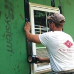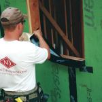 When installing the windows, we put a healthy-sized bead of sealant about 3 inches back from the sill’s edge to act as a dam. With the windows in place, we applied a strip of tape at each jamb, running it about 3 inches above and below the window frame. Lastly, we applied the head flashing and rolled everything with the J-roller.