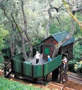 Butler designs and builds custom playhouses, which range in price and complexity from a $3,300 brightly painted cabin to a glazed, wired, and plumbed $166,000 redwood chalet. Among the details kids request are slides, climbing walls, rope ladders, zip lines, and jail cells with secret escape hatches — architectural elements that ensure the occupants will get plenty of exercise, both physical and mental. Butler builds the fanciful wood structures in her San Francisco shop and ships them all over the country for installation by local tradespeople.