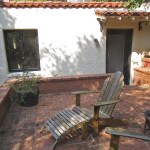 Our project was to fix a masonry building built up against a hill. The attached structure housed an exercise room on the main level, which was accessed through the garage and small mechanical space. The doors of the exercise room opened onto the lower patio area, while a set of exterior stairs led to an apartment and upper patio area on the second-floor level. On the uphill side, the room’s right and back walls were below ground level, with the back wall extending up another 3 feet to retain dirt on the hill above it (see plan and section details below).
