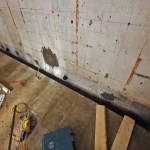 Liner walls and deadmen. It was time to bring in an engineer, who prescribed new, heavily reinforced concrete walls poured interior of the existing block walls, tied into grade beams and retention structures in the hill above the building. The purpose of the new “liner” walls, as he referred to them, was to take over the structural functions of the existing block wall. These new 6-inch-thick walls were tied into the upper patio’s slab with rebar dowels through holes cored into the slab and, at the bottom, doweled into the block wall’s existing footing. All in and cured, it was a very solid system.