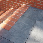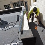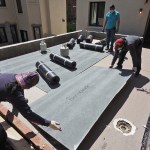 To seal the outward-facing seams, we embedded a strip of the manufacturer’s detail fabric in the Hydralastic 836 waterproofing compound; this nonwoven, geo-textile fabric helped to create a water- and vapor-proof barrier to resist moisture penetration through end laps.