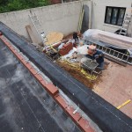 A “blind side” waterproofing assembly is installed to dissipate any ground water which may collect between the new and existing walls. (Ground run-off water from the upper and lower patios are piped separately from the blind side drainage system to daylight.)
