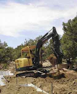 I soon realized, however, that I had discovered a market niche. Calls from other contractors started coming in when word got around that I had bought this unusual new machine that was faster than a backhoe and would fit almost anywhere. Footings for complex building footprints are no problem with this smaller machine, and I have received several calls to dig for infill houses that have 14 or more corners in a 2,500-square-foot floor plan.