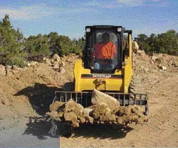 Skid-Steer SafetyAlways: • Read and understand all of the manufacturer’s safety recommendations. • Understand the tipping limit and gradability limitations to the front, rear, and sides. • Be aware of the stability of the terrain and stay away from edges. • Watch for holes, weak floors, weak ramps, deep mud, and drop-offs. • Keep everyone out of the operating area. Visibility is often restricted and these machines are quick. • Maintain everything on the machine in proper working order. If anything does not work the way it is supposed to, fix it. Repair frayed hydraulic lines immediately. • Perform daily inspections, including a close inspection of the tires and tire pressure. A tire failure with a raised load could be a tragedy. • Give yourself enough time to work carefully. • Be aware of the alternate exit (often the rear window), especially if you work around water. • Be aware of all underground or overhead utilities. Locate utilities before you dig. • Use manufacturer-supplied struts, supports, and locks during maintenance. • Walk around the machine before you move it. • Carry loads as low as possible. • Wear the seatbelt. If you can stay at the controls, you are more likely to stay in control. • Climb on and off the machine carefully, with three points of contact. Slipping on a muddy surface can cause serious injuries. Never: • Work in the dark, when you are tired, or when you are under the influence of drugs, alcohol, or medications that can interfere with your judgement. • Modify any part of the protective structure for any reason. • Get out of the machine under a raised load. • Work around or on hydraulic systems unless you know what you are doing. An accidental injection of high-pressure fluid can be fatal and may require immediate surgery by a physician familiar with these types of injuries. • Use ether if the engine is equipped with a preheater of any type. • Lift or move a load over a person. • Disable or bypass any safety equipment on the machine. |